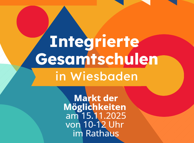 Der Markt der Möglichkeiten im Foyer des Rathauses am 15.11.2025 von 10 bis 12 Uhr statt. Alle Gesamtschulen Wiesbadens stellen sich an dem Tag dort vor.
